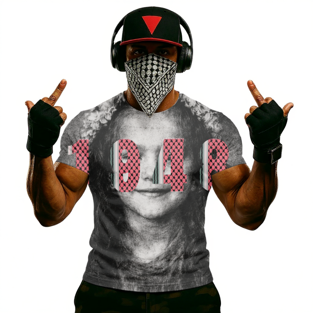 This lightweight cotton tee carries a quiet, artful energy — a faded vintage portrait framed on the chest, overlaid with bold, patterned numerals. It feels like a found photograph slipped into modern streetwear: slightly mysterious, slightly nostalgic. Wear it with worn denim and low sneakers for a day of wandering through galleries, or layer it under a cardigan when you want a subtle conversation starter. The breathable Airlume cotton keeps the print sharp while the shirt moves and settles comfortably against the body.