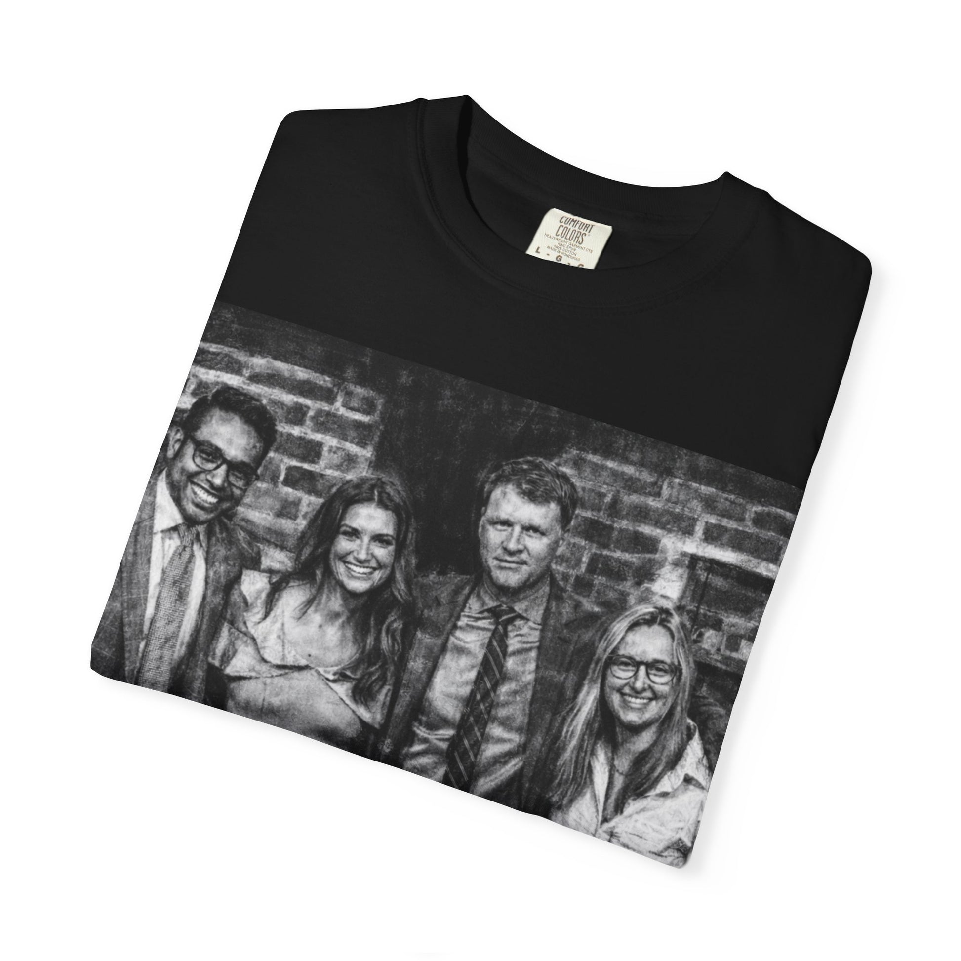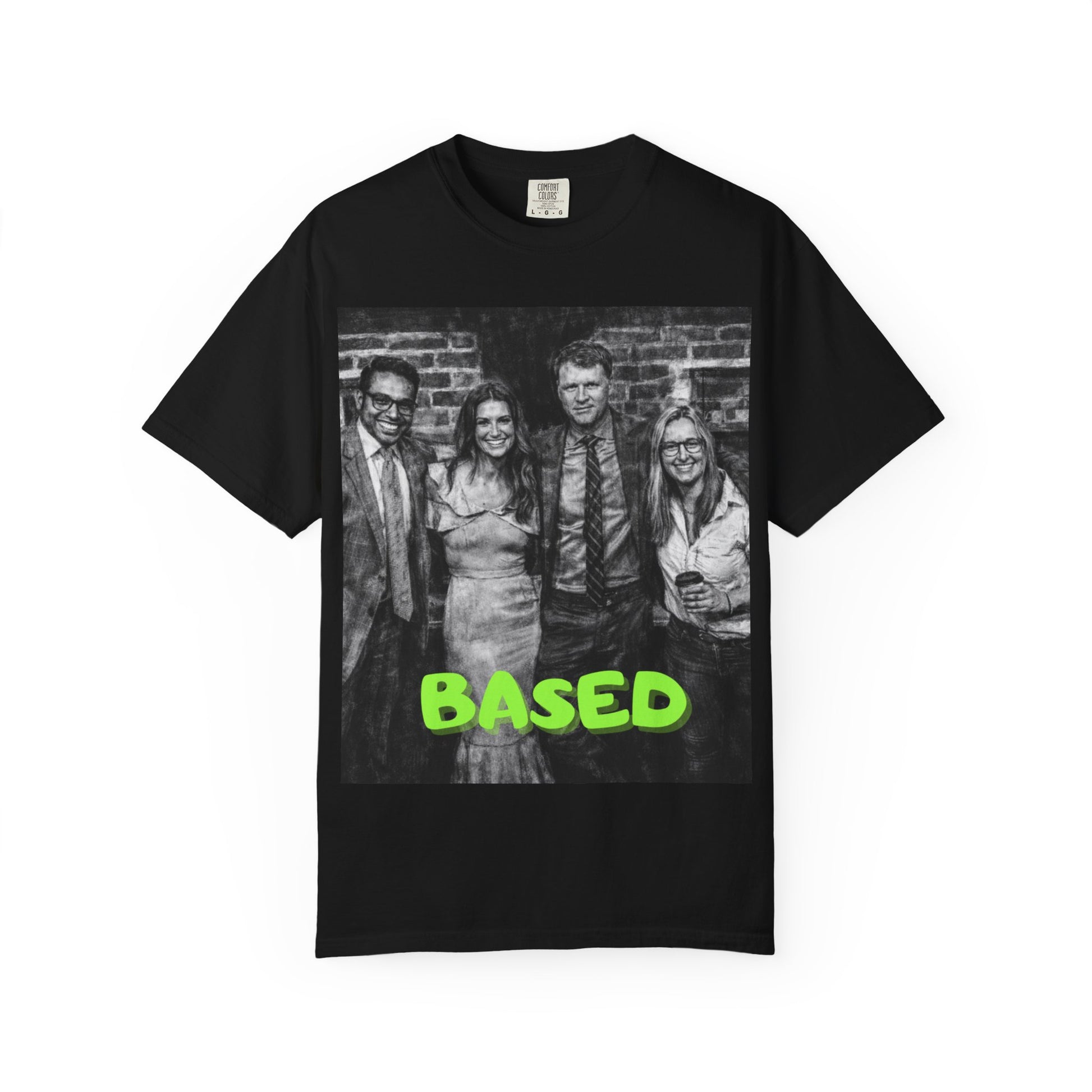 A garment-dyed heavyweight tee with a relaxed fit that wears in softer with every wash. The front features a high-contrast black-and-white photo panel of a close-knit group, anchored by a bold, neon-green “BASED” print that reads like a playful, confident statement. The tubular knit and double-needle stitching give the shirt a clean silhouette and lasting structure, while the garment-dye process creates a lived-in, vintage feel. Easy to throw on for late-night hangouts, small gatherings, or casual days when you want your look to feel authentic and slightly irreverent.