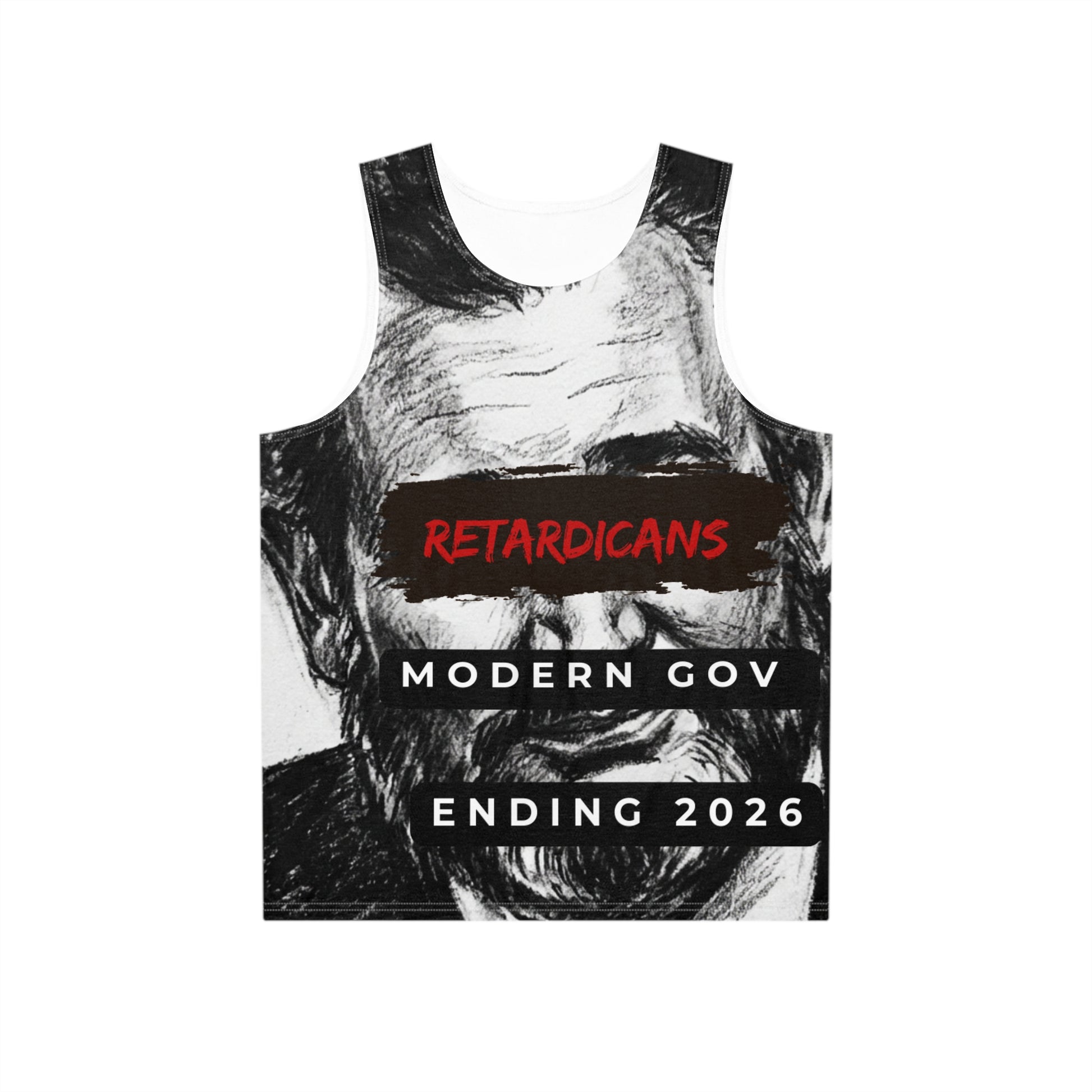 Retardicans : Theodore Cruizington The soft, extra-light polyester fabric wears cool on hot days and moves with you — whether you’re layering it for a gig or wearing it solo on a sunlit street. The round neckline and regular fit keep the silhouette relaxed and easy, while the double-stitched hems add durability so the tank keeps its shape through repeated outings. The high-contrast printed panel gives a streetwise edge that works with denim, joggers, or shorts for an off-duty, expressive look.