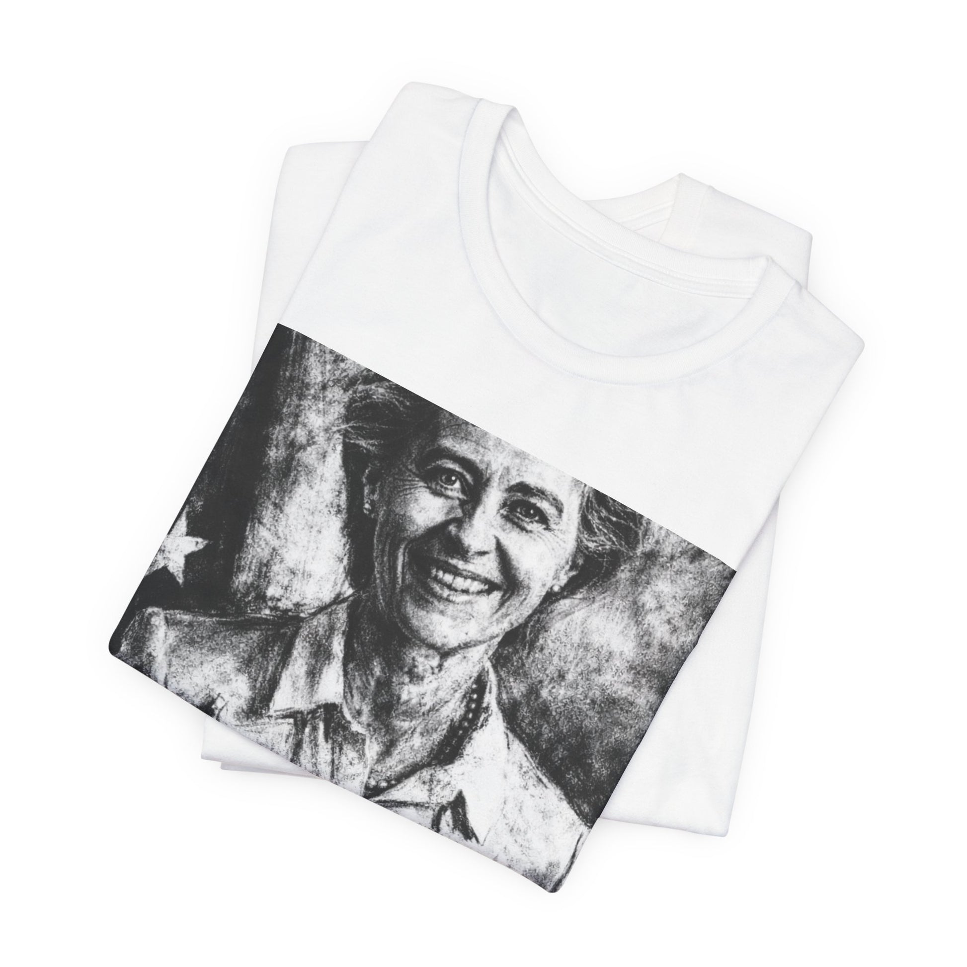 This lightweight crew-neck tee carries a bold, artful graphic across the chest — a high-contrast, vintage-style portrait layered with a single striking word in vivid purple. The soft, breathable Airlume cotton feels cool against the skin and drapes with a relaxed retail fit that works with jeans, layered jackets, or under a blazer for an edge. Subtle construction details like side seams, shoulder tape, and a ribbed knit collar keep the shape wash after wash. The result is a wearable statement piece that reads like a small, portable gallery—direct, slightly subversive, and designed to be lived in.
